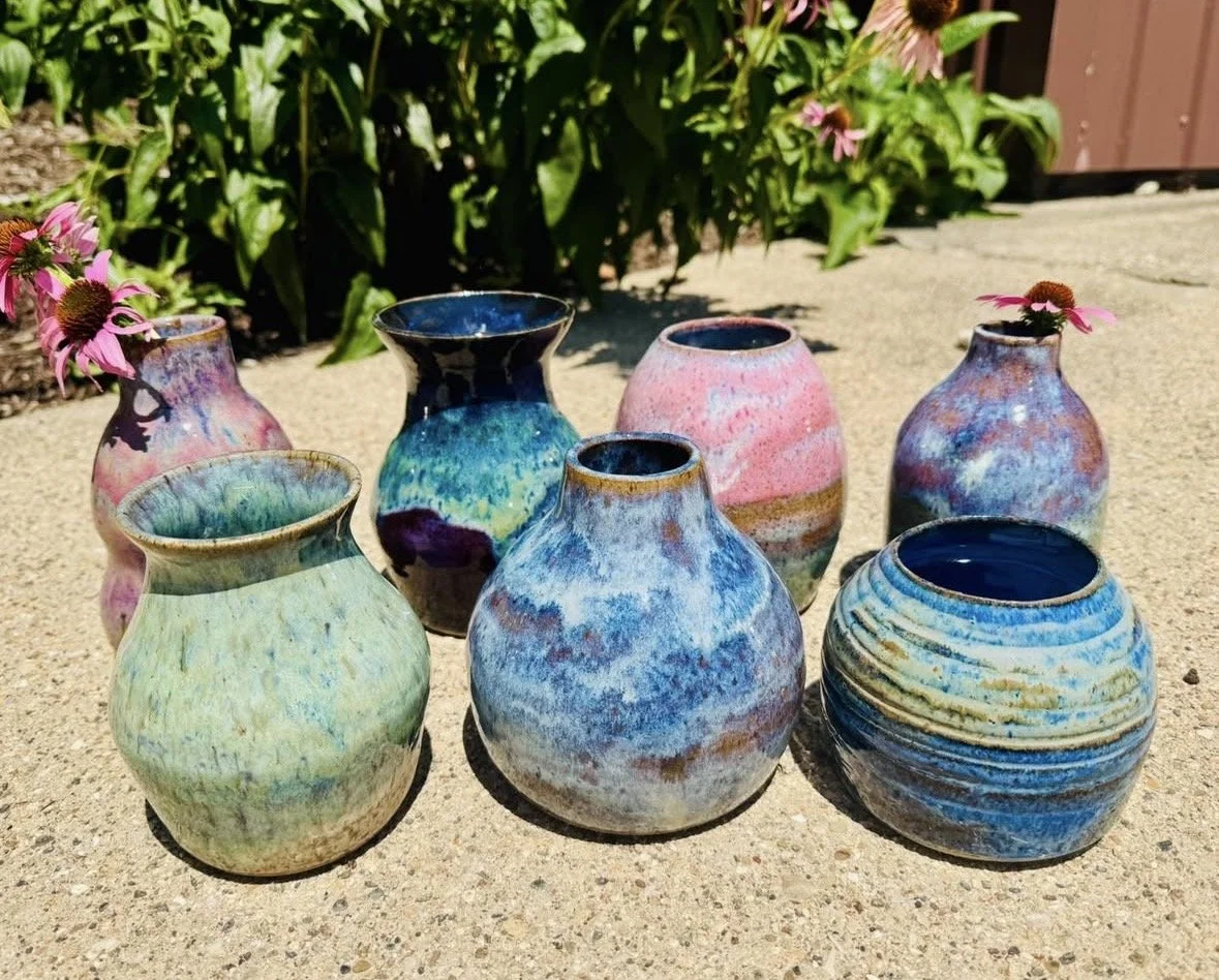 The ashes will NOT be visible as they are embedded in the body of the clay and then covered with the glaze colors of your choosing. They are perfect for displaying fresh flowers! Check out the Wheel Thrown Pottery in the Gallery section to see the many different styles and shapes to choose from! Pricing will vary.